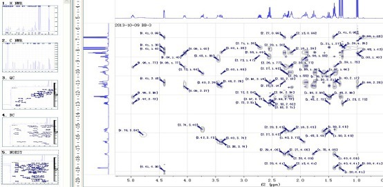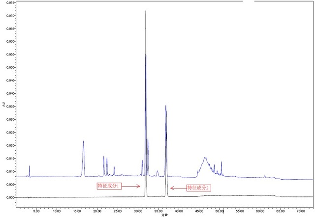首先對原料進行分析初步判定指紋峰的類型,然后通過判定的結果制定相關的純化方案,再制定的方案得到所需目標物, 最后通過 MS、NMR、IR、UV 來確定相關化合物的結構。