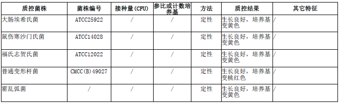 接種以下質控菌株,放置37±1℃需氧培養24±3小時。